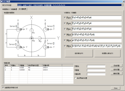 本测试系统可自动对已标定(可矩阵法标定或公式法标定)的测力天平自算动得计到合力,最多可支持9分量测力天平。